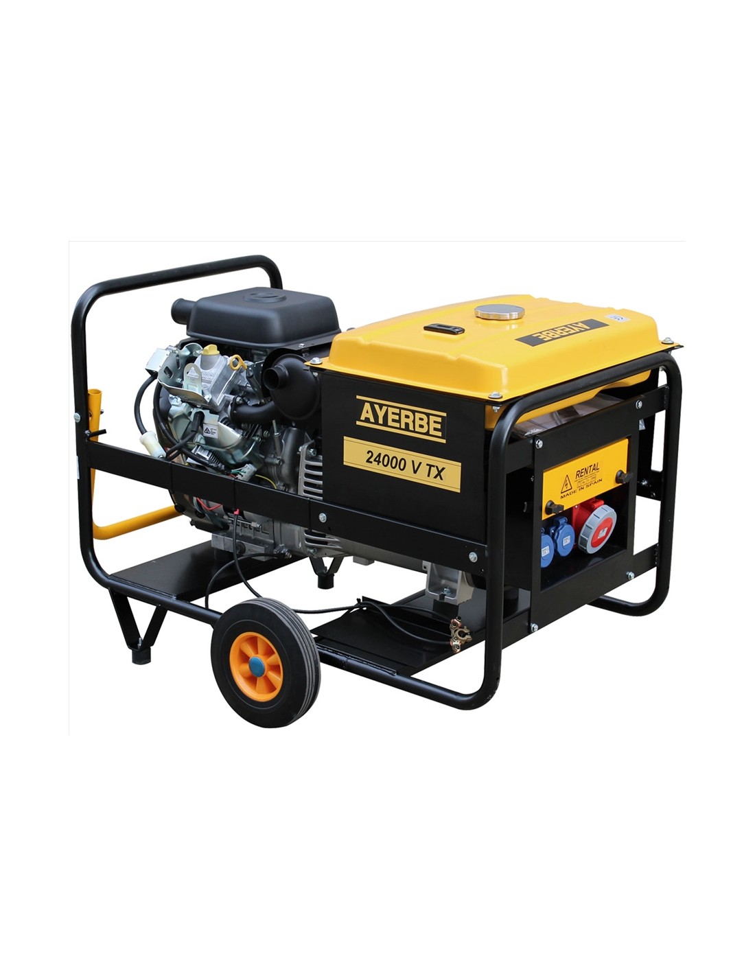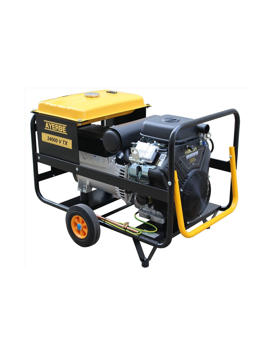 Gerador Ayerbe AY 24000 V TX E, motor poderoso a 4 tempos para 993cc, Potência máxima de 24KVA / 19200W, Potência nominal de 22KVA / 17500W,