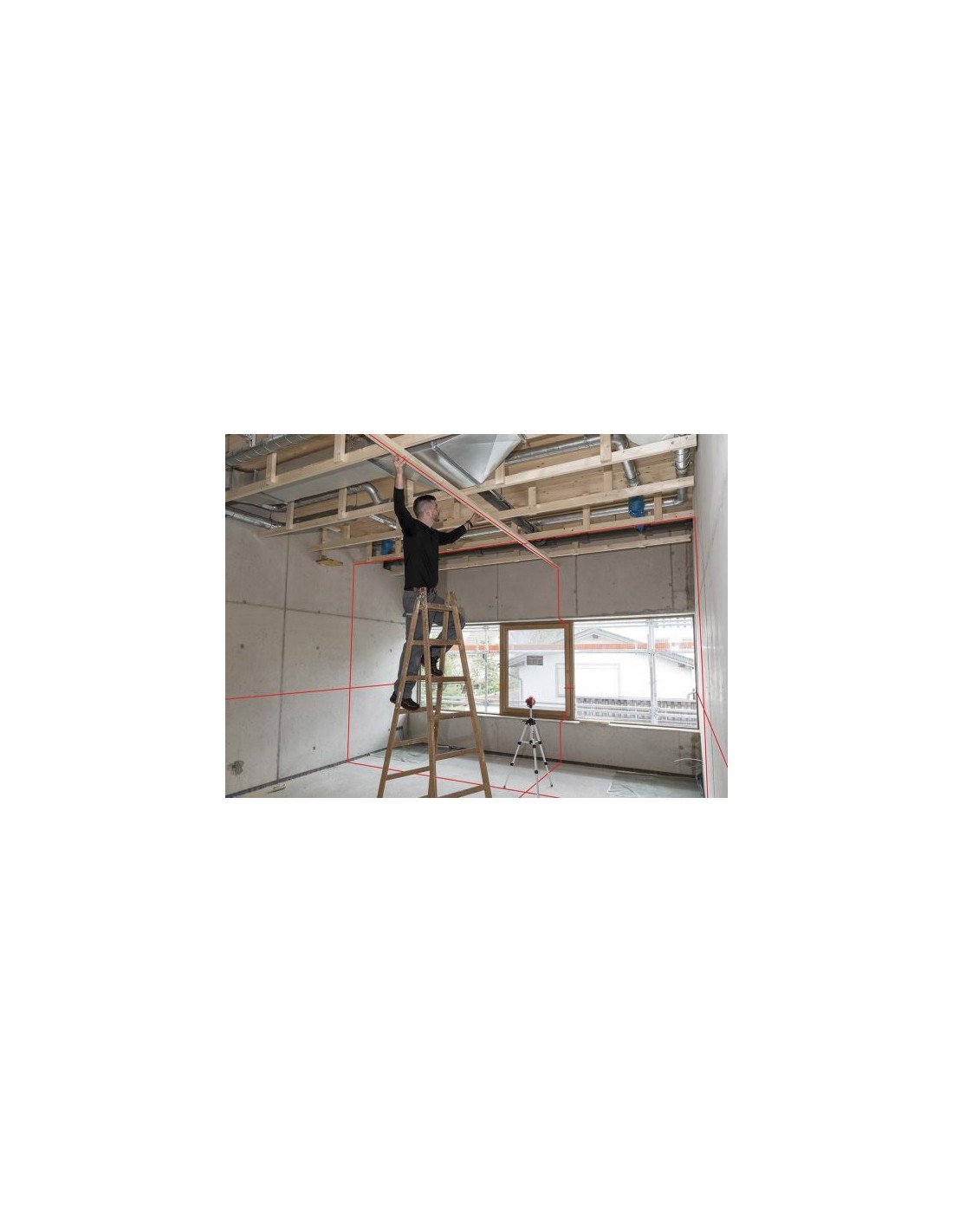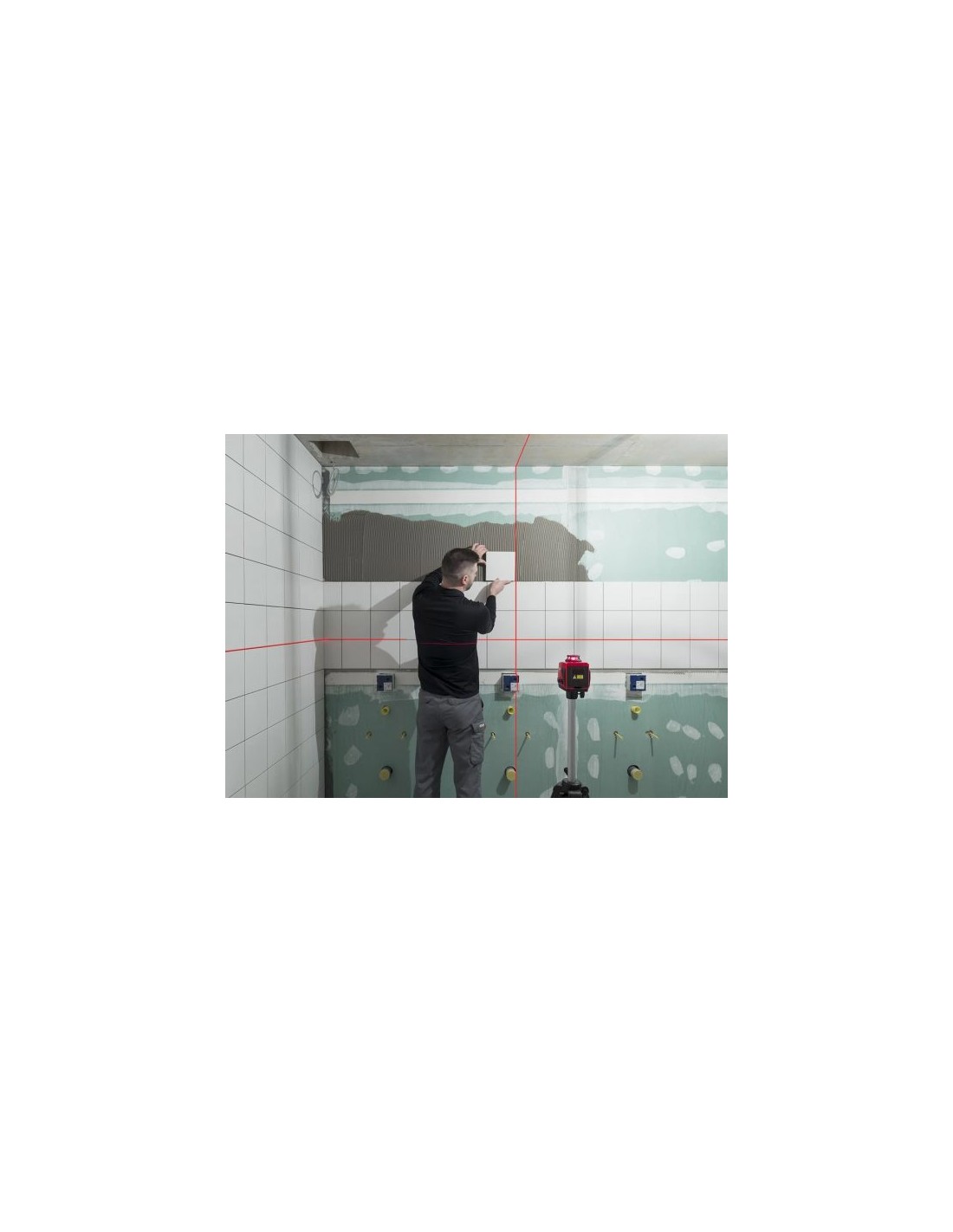 Duas linhas de laser verticais de 360 ?? e uma horizontal de 360 ?? permitem o uso universal